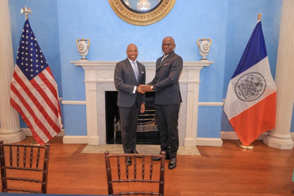 Le Président de la Transition, Président de la République, Chef de l’Etat, le Général, Brice Clotaire Oligui Nguema s’est entretenu avec Éric Adams, Maire de la ville de New York.
