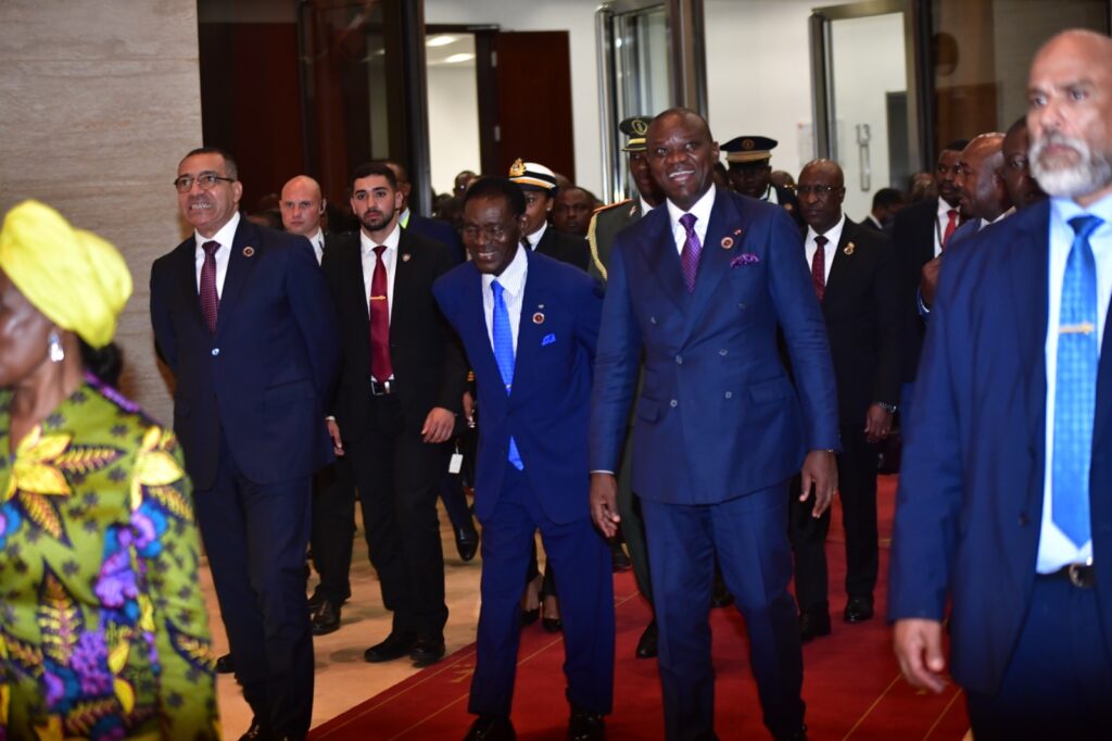 Le Président de la Transition, Président de la République, Chef de l’État le Général Brice Clotaire Oligui Nguema qu’accompagnait la Première Dame Zita Oligui Nguema, a pris part à la XXVème session ordinaire de la Conférence des Chefs d’État et de Gouvernement de la CEEAC, le 18 Octobre 2024 à Sipopo en République de Guinée Équatoriale.