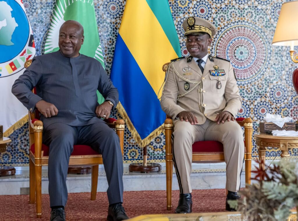 Le Président de la Transition, Président de la République, Chef de l’État, le Général Brice Clotaire Oligui Nguema a reçu le, 24 Décembre 2024 au Palais Rénovation à Libreville, Son Homologue ghanéen le Président John Dramani Mahama, vainqueur de l’élection présidentielle du 7 Décembre dernier.