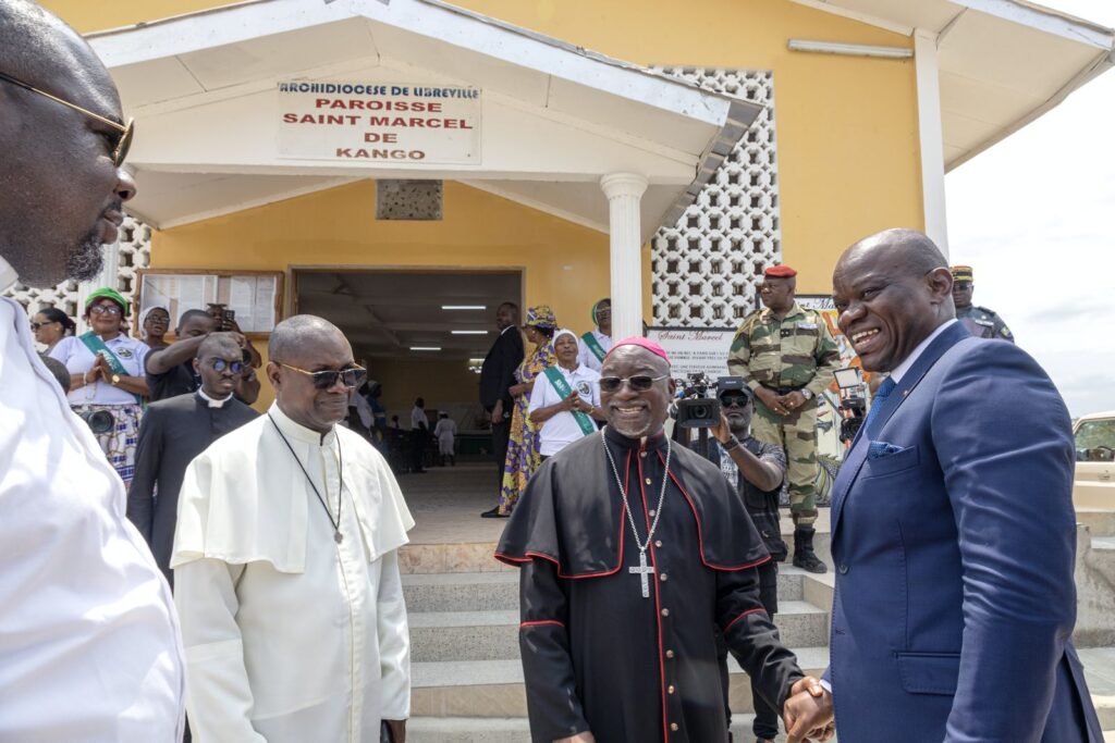 Accueilli par les autorités administratives, politiques, religieuses et les populations, le Chef de l’État a entamé sa visite par un office religieux dédié à la Nation et à la 5e République, et célébré en la paroisse Saint Marcel de Kango par l’Archevêque de Libreville, Monseigneur Patrick Iba-ba.